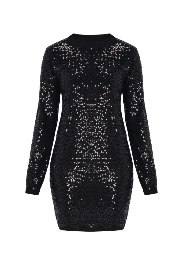 faina Gebreide jurk ‘Festive’ zwart