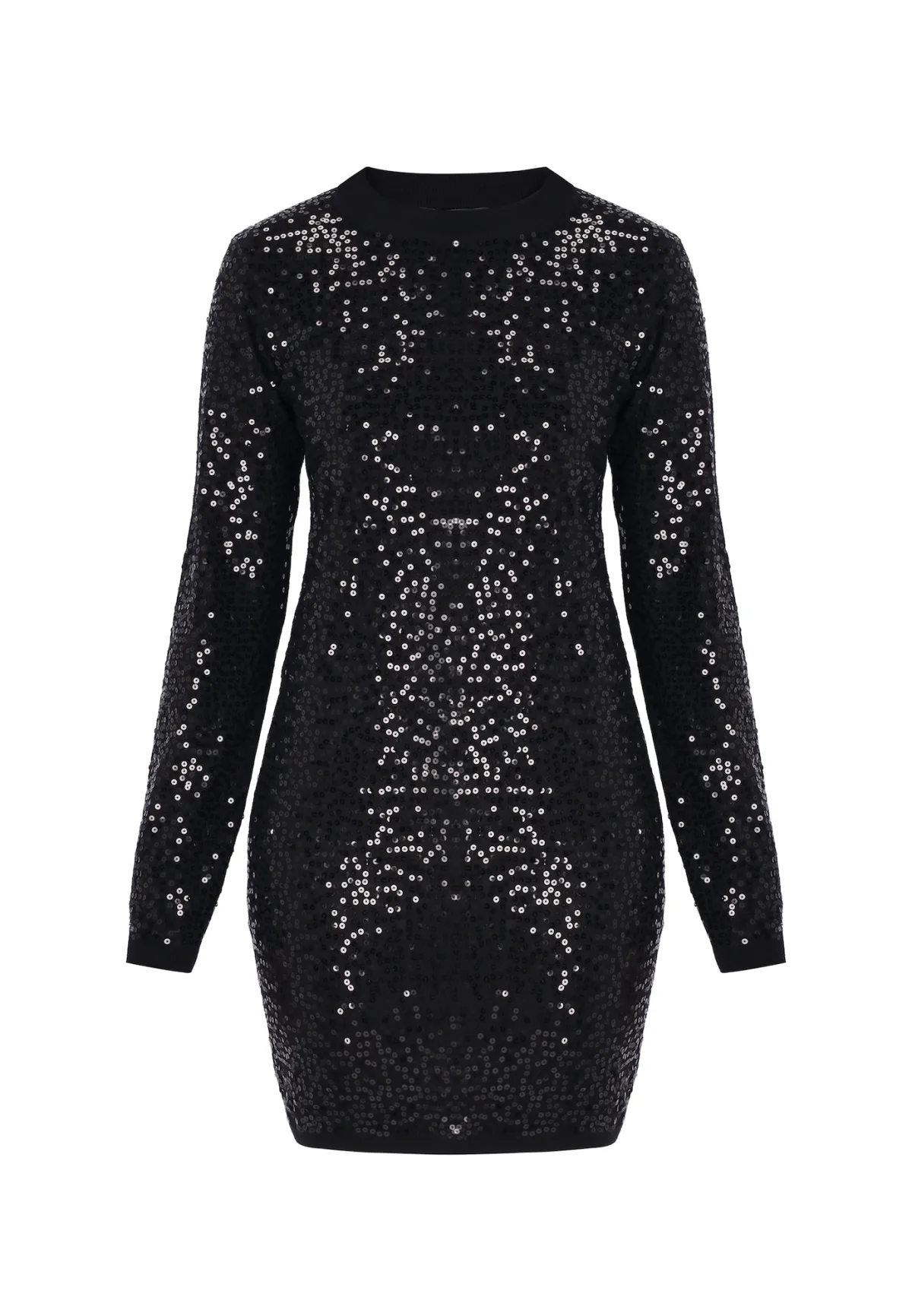 Design: Geribbelde kraag; Materiaal: Knitwear; Halstype: Ronde hals; Motief: Effen; Details: Pailletten; Extra's: Glanzend; Lengte: Kort/mini; Snit: Getailleerd; Pasvorm: Slanke pasvorm; Armlengte: Lange mouw
