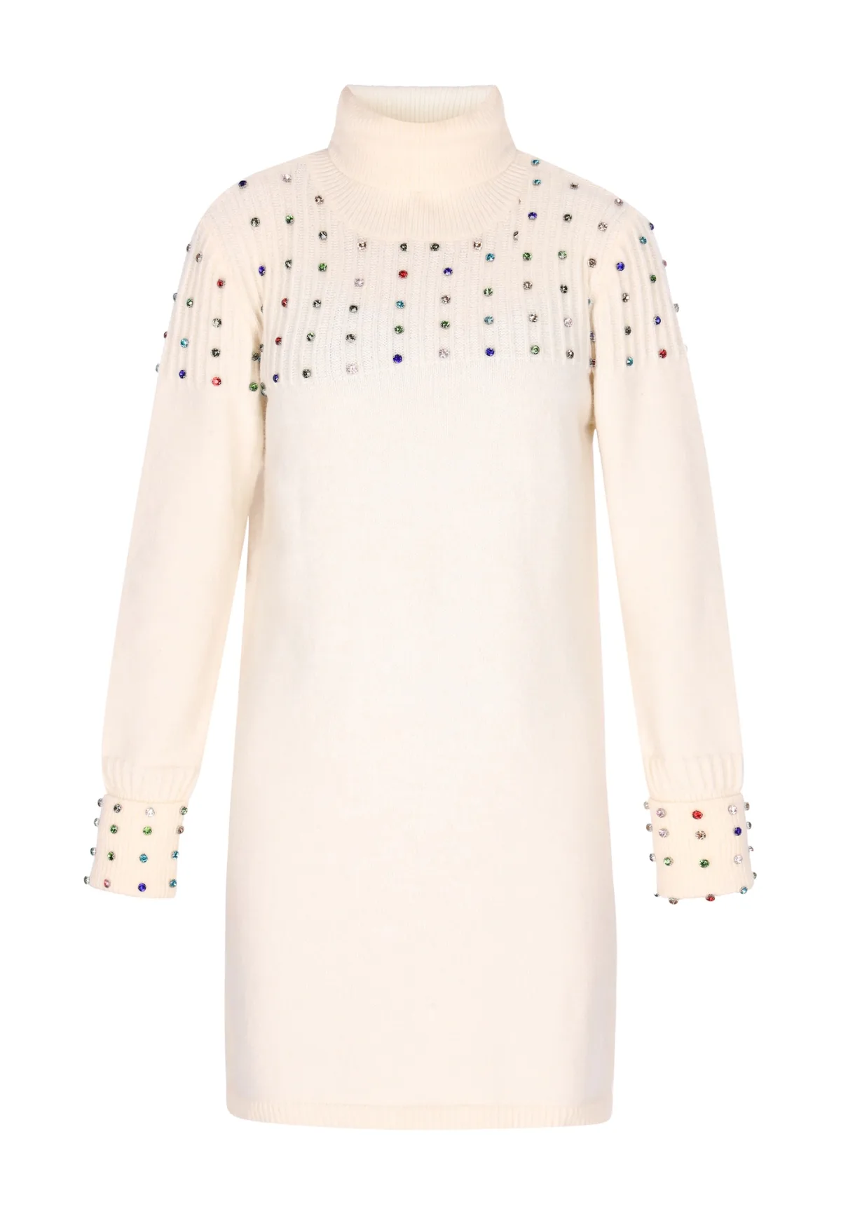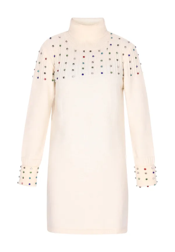 Design: Geribbelde kraag, Geribd ceintuurtje; Materiaal: Knitwear; Halstype: Col; Motief: Effen; Details: Sierstenen; Extra's: Met halfedelstenen, Fully fashioned, Voelt zacht aan; Lengte: Kort/mini; Snit: Recht; Pasvorm: Normale pasvorm; Armlengte: Lange mouw