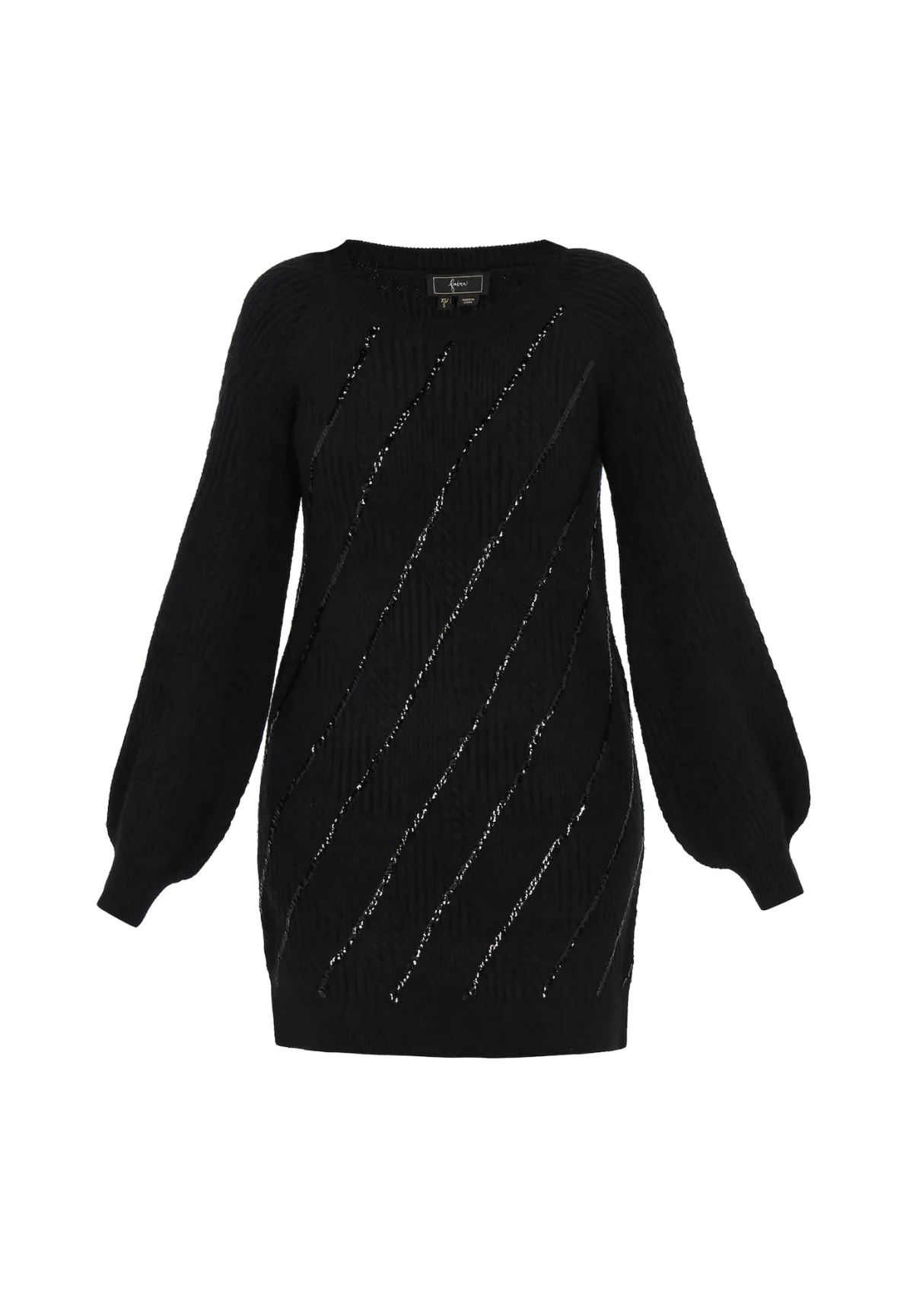 Design: Geribd ceintuurtje; Type sluiting: Slip; Materiaal: Knitwear; Halstype: Ronde hals; Motief: Effen; Details: Pailletten; Extra’s: Applicaties; Lengte: Kort/mini; Pasvorm: Normale pasvorm; Armlengte: Lange mouw