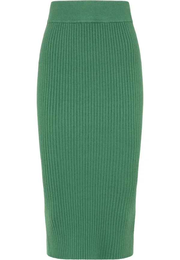 Accentueer je vrouwelijke silhouet met deze gebreide rok van faina. Het lange model in combinatie met de strakke pasvorm flatteert uw figuur en een all-over geribd breipatroon maakt het ontwerp prachtig af. Een elastische ribgebreide boord zorgt voor de perfecte pasvorm. Met dit stuk trekt u gegarandeerd alle blikken naar u toe.