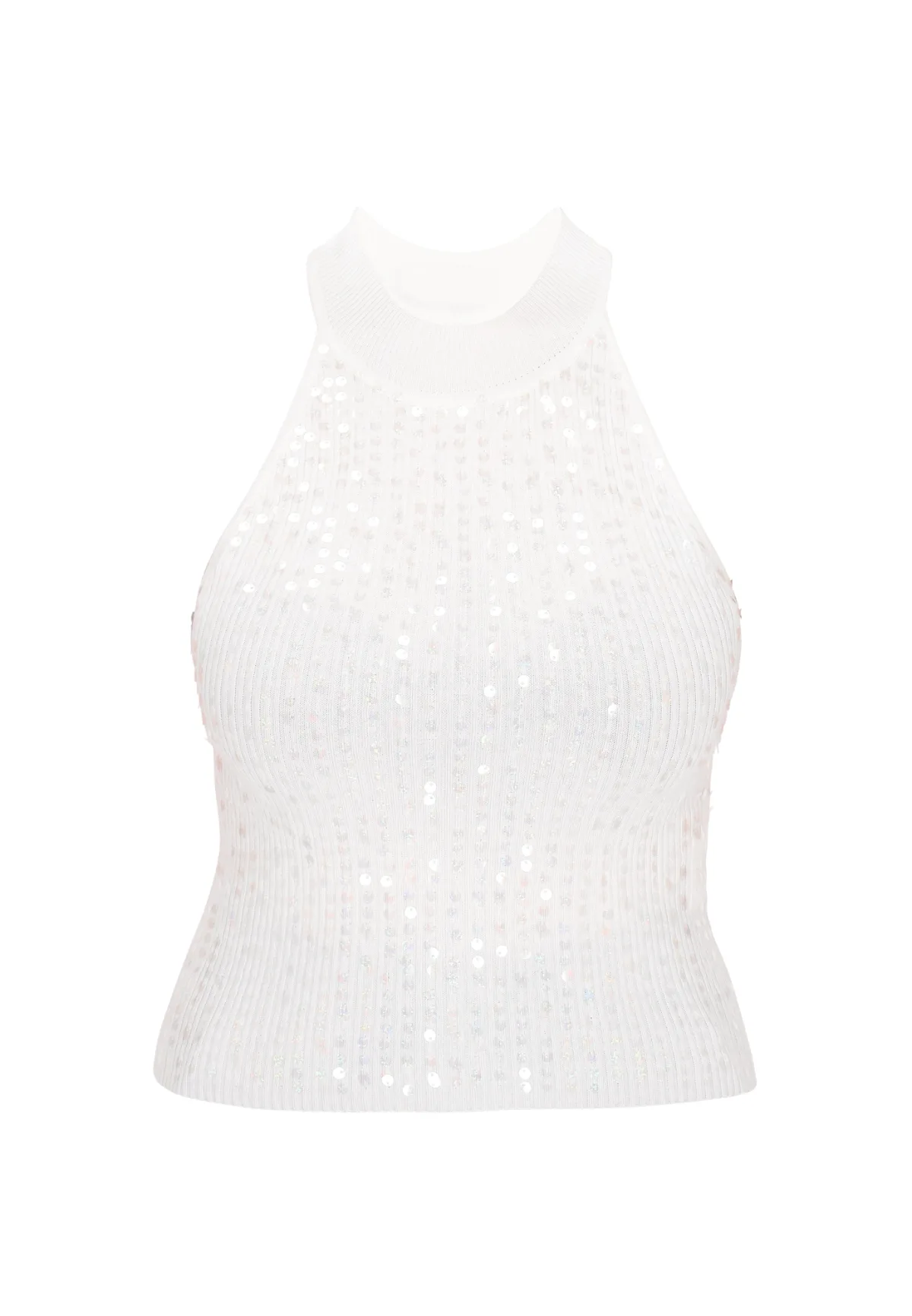 Design: Rechte zoom; Materiaal: Viscose; Halstype: Ronde hals; Motief: Effen; Details: Pailletten; Extra’s: Voelt zacht aan; Pasvorm: Slanke pasvorm; Armlengte: Mouwloos; Lengte: Normale lengte