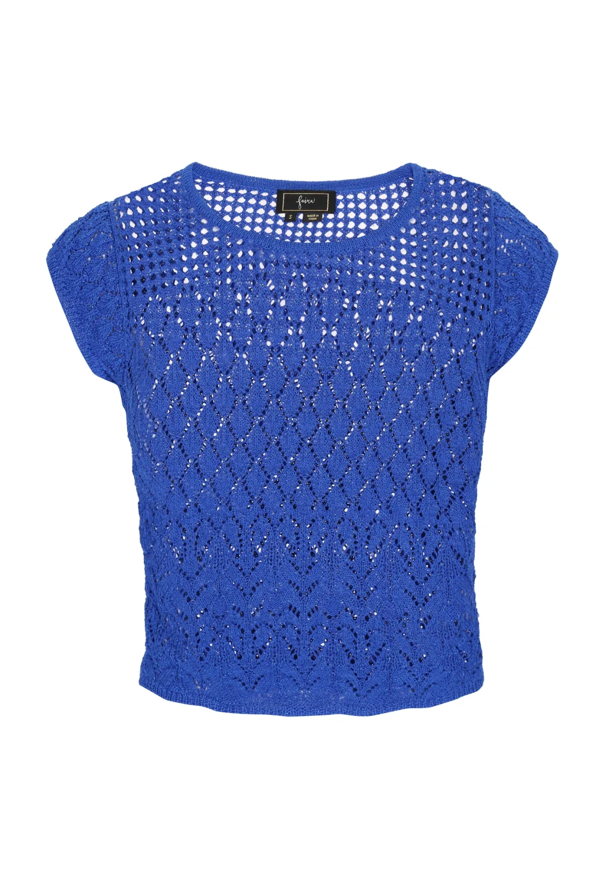 Design: Geribd ceintuurtje; Materiaal: Knitwear; Halstype: Ronde hals; Motief: Effen; Details: Mesh; Extra’s: Visnet brei, Transparant, Luchtige stof; Pasvorm: Normale pasvorm; Armlengte: Kwartmouw; Lengte: Normale lengte