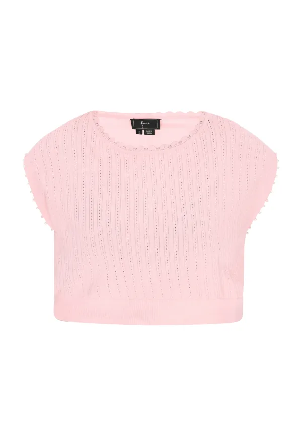 Design: Rechte zoom; Materiaal: Knitwear; Halstype: Ronde hals; Motief: Effen; Details: Parels; Extra's: Op staal naden; Pasvorm: Normale pasvorm; Armlengte: Kwartmouw; Lengte: Korte pasvorm