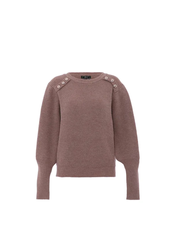 Deze gebreide trui is gemaakt voor comfort en stijl en heeft een geribbelde textuur met decoratieve knopen op de schouders. De ronde hals en strakke geribde zoom, manchetten en halslijn zorgen voor een gezellige pasvorm. Met een normale pasvorm en zachte textuur biedt dit elegante ontwerp warmte voor elke gelegenheid. Pullover trui