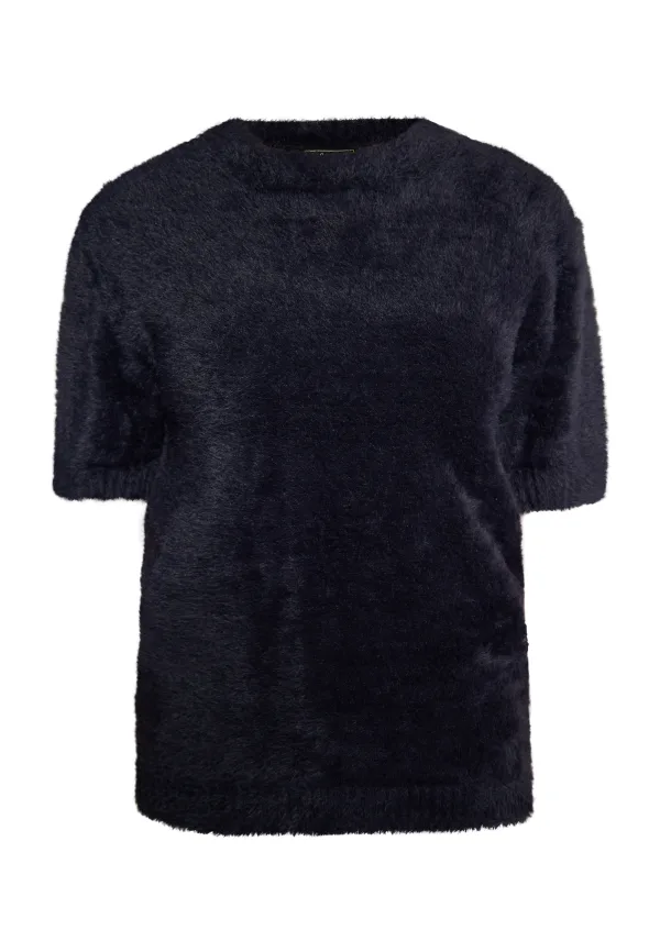 Een fijngebreid patroon en een pluizige garenmix met franjes en viscose geven deze trui van Faina een elegante uitstraling. Verrijk je breiwerk met deze tijdloze basic met korte mouwen die op vele manieren gestyled kan worden, afhankelijk van je accessoires. Gebreide trui
