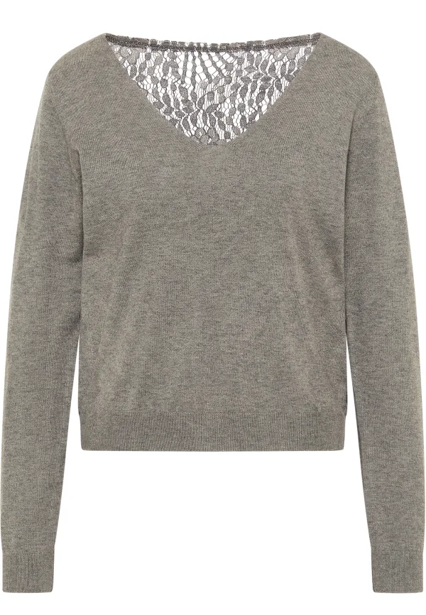 Deze gebreide trui van faina overtuigt en fascineert van alle kanten. Met zijn fijne breiwerk, de vorm met lange mouwen en de zachte, iets wijdere V-hals speelt hij met de eenvoudige en duidelijke attributen van de basistop. Aan de achterkant ontvouwt het echter zijn spannende glamour. Delicaat kant siert van de schouders tot aan de zoom. Hier wordt de V-vorm herhaald, waardoor de volle, vrouwelijke elegantie van uw schouder- en ruglijn naar voren komt. Slechts licht oversized gesneden, ziet u er altijd trendy en absoluut stijlvol uit in deze zachte en losse trui.