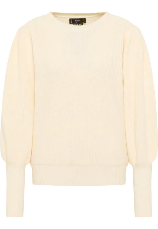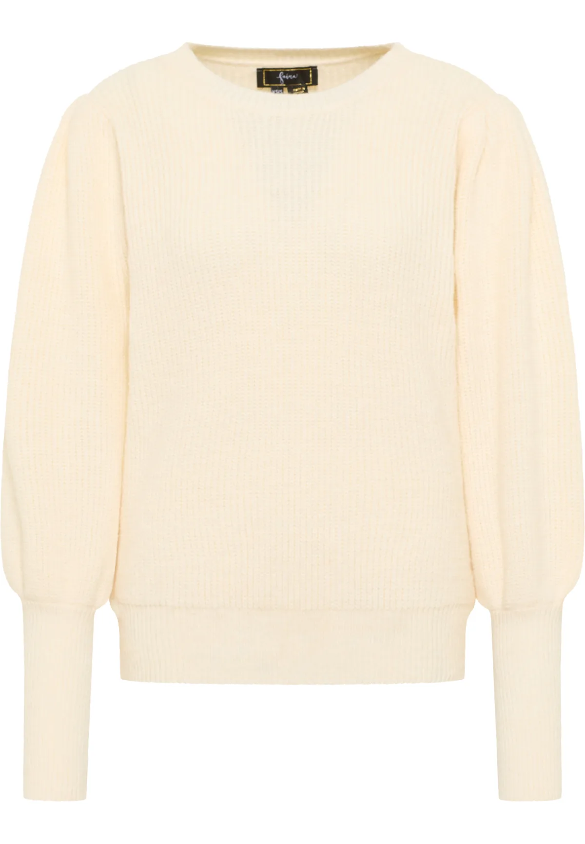 Deze basic gebreide trui van faina overtuigt met een geraffineerde touch. De zachte garenmix in geribd breisel wordt geaccentueerd met wijde pofmouwen die met hun lange gebreide manchetten een mooi volume krijgen. Een geribde ronde halslijn maakt het ontwerp compleet.