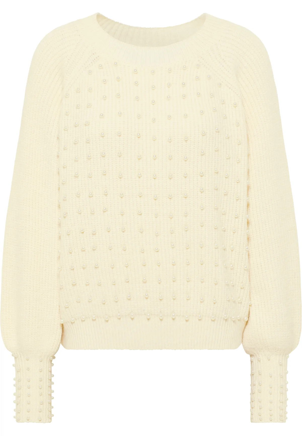 Met deze variabele ribgebreide trui van faina kunt u zowel overdag als 's avonds schitteren. De zachte garenmix is aan de voorkant versierd met glanzende sierkralen, de wijde raglanmouwen vinden een betoverende afwerking in nauwsluitende manchetten die eveneens voorzien zijn van sierkralen. Of hij nu gedragen wordt met leer, stof of jeans, deze trui staat garant voor een elegante dameslook.