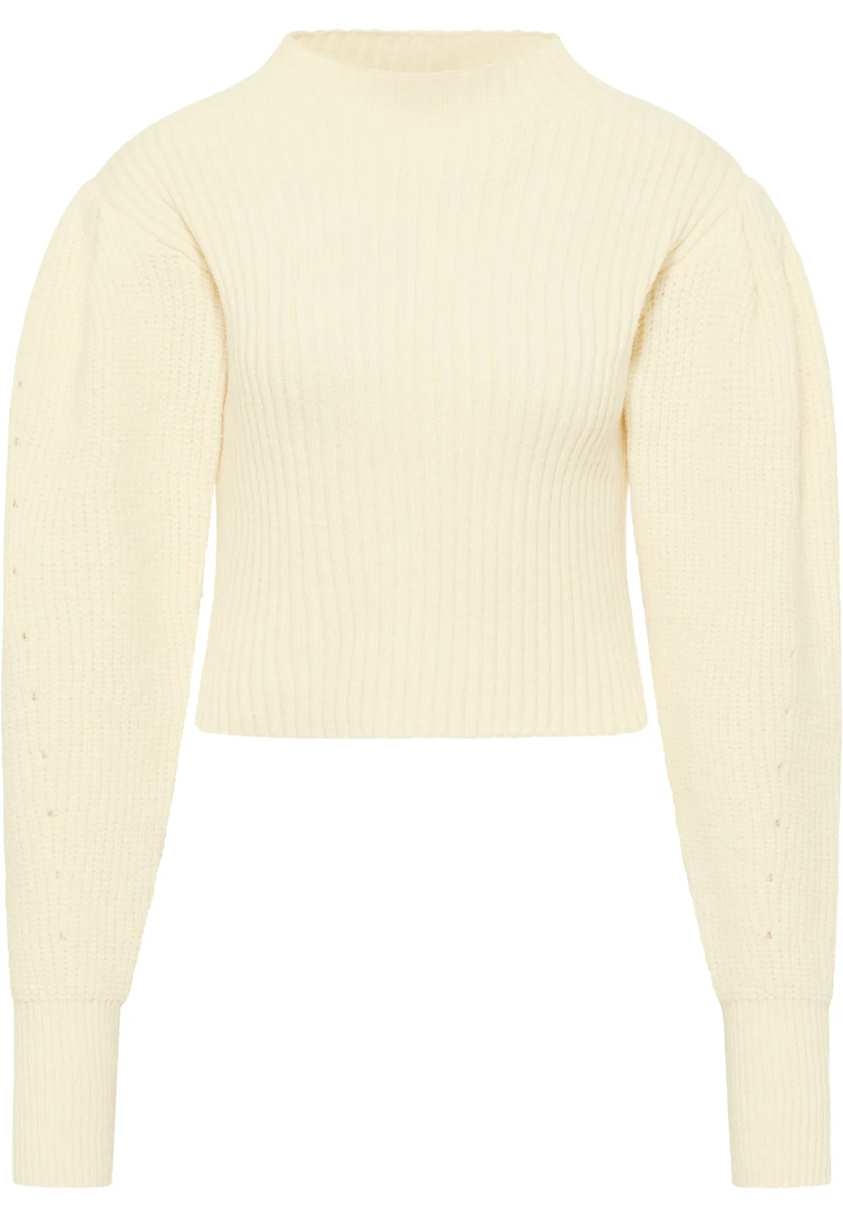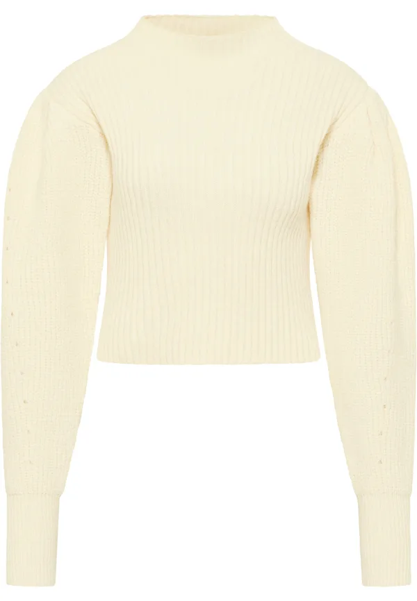 Deze zachte geribde trui van faina heeft een slank model, wijde pofmouwen met lange manchetten en een kleine opstaande kraag. Het ontwerp is gemaakt van een zachte, rekbare garenmix die zeer comfortabel is om te dragen. De kortere vorm past perfect bij hoog getailleerde broeken en vrouwelijke kokerrokken.