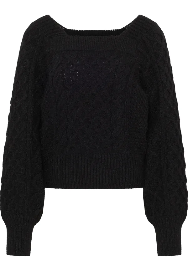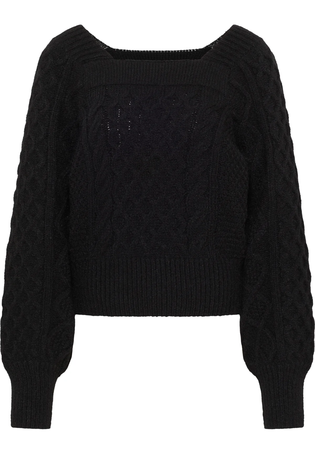 Het geraffineerde ontwerp van verschillende gebreide patronen en de korte vorm met vierkante halslijn geven deze trui van faina een heel bijzondere uitstraling. De zachte garenmix met zijn vormvaste geribde boorden zorgt voor veel comfort.