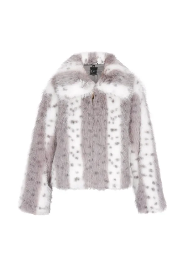 Geniet van de luxueuze uitstraling van dit jasje, met een bontachtige textuur en een chique, cropped silhouet. De kraag en lange mouwen zorgen voor elegantie, terwijl het stippenpatroon een speelse charme uitstraalt. Dit behaaglijke kledingstuk is afgewerkt met een merklabel bij de hals en is ontworpen voor ultieme warmte en stijl. Jas