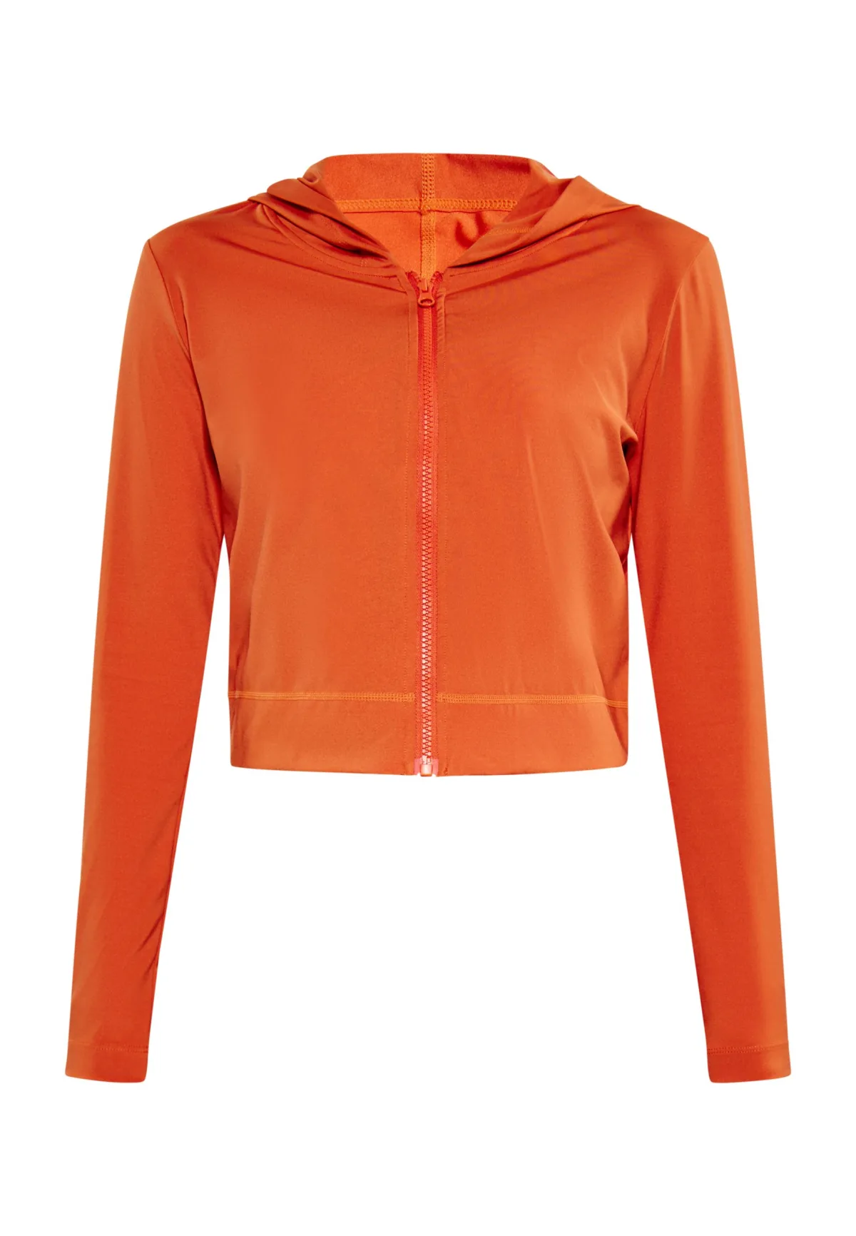 Deze cropped hoodie is ontworpen voor de moderne vrouw die zowel stijl als comfort waardeert en is een veelzijdige toevoeging aan je athleisure-garderobe. Met een ritssluiting over de volledige lengte en lange mouwen biedt het flexibiliteit in styling. De vaste capuchon zorgt voor flair, terwijl de geribde manchetten en zoom zorgen voor een goede pasvorm. Met zijn eenvoudige maar gestructureerde ontwerp is dit sportkledingstuk perfect voor elke training. Dit product maakt deel uit van de Yogacollectie Jas
