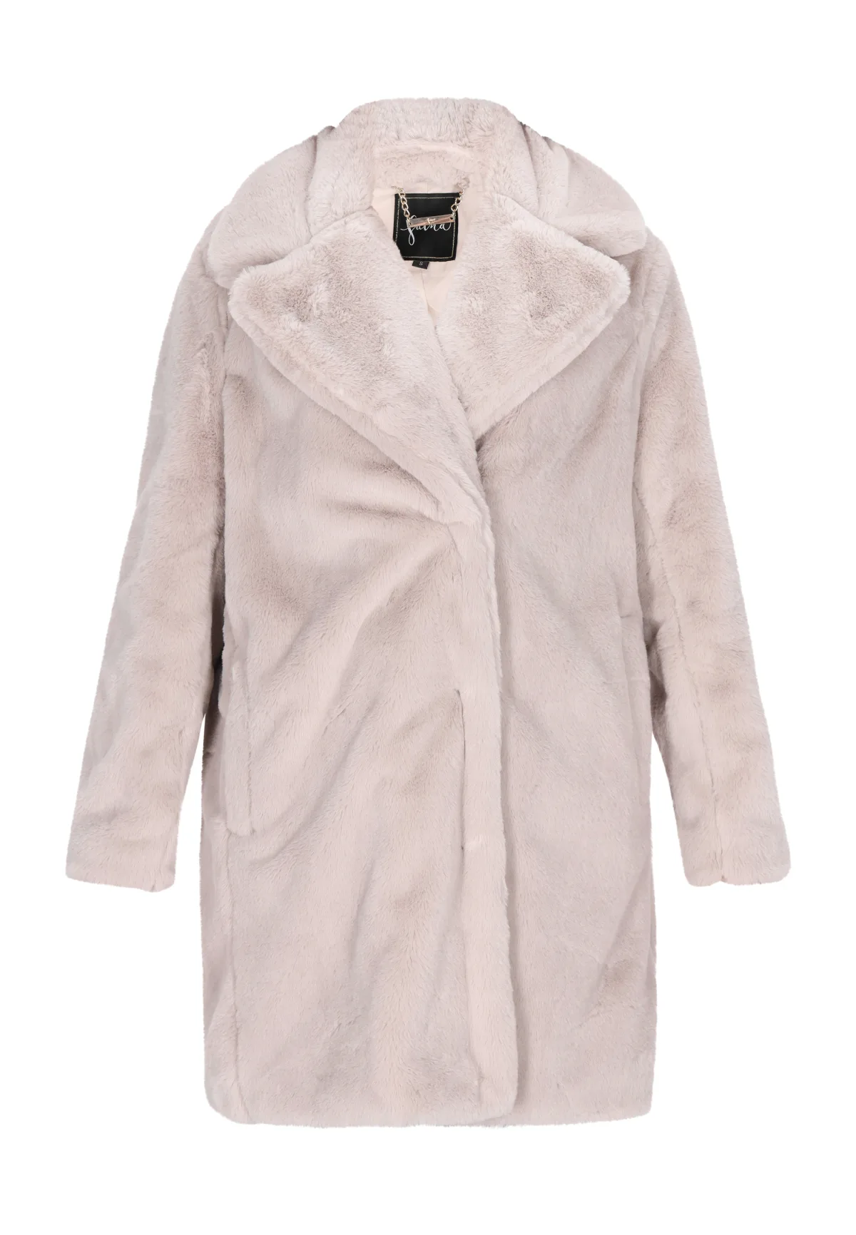 Dompel jezelf onder in de luxe van deze zachte jas met een brede kraag en knoopsluiting voor optimaal draagcomfort. Hij heeft lange mouwen, een lengte tot halverwege de dij en steekzakken, waardoor hij elegantie en een chique stijl uitstraalt. De losse pasvorm draagt ??bij aan de modieuze look, waardoor hij perfect is voor een avondje uit of om een ??vleugje chic toe te voegen aan een alledaagse look. Hij maakt deel uit van de Fashion Look Collectie. Jas