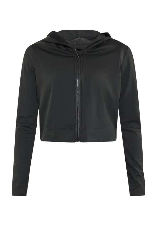 Deze cropped hoodie is ontworpen voor de moderne vrouw die zowel stijl als comfort waardeert en is een veelzijdige toevoeging aan je athleisure-garderobe. Met een ritssluiting over de volledige lengte en lange mouwen biedt het flexibiliteit in styling. De vaste capuchon zorgt voor flair, terwijl de geribde manchetten en zoom zorgen voor een goede pasvorm. Met zijn eenvoudige maar gestructureerde ontwerp is dit sportkledingstuk perfect voor elke training. Dit product maakt deel uit van de Yogacollectie Jas