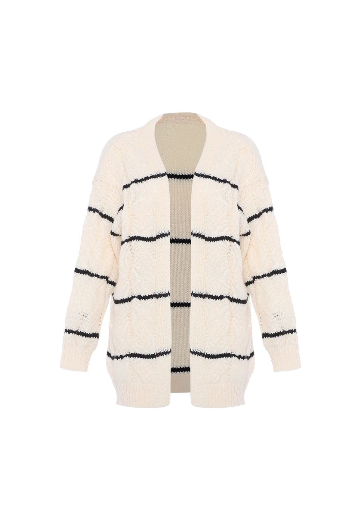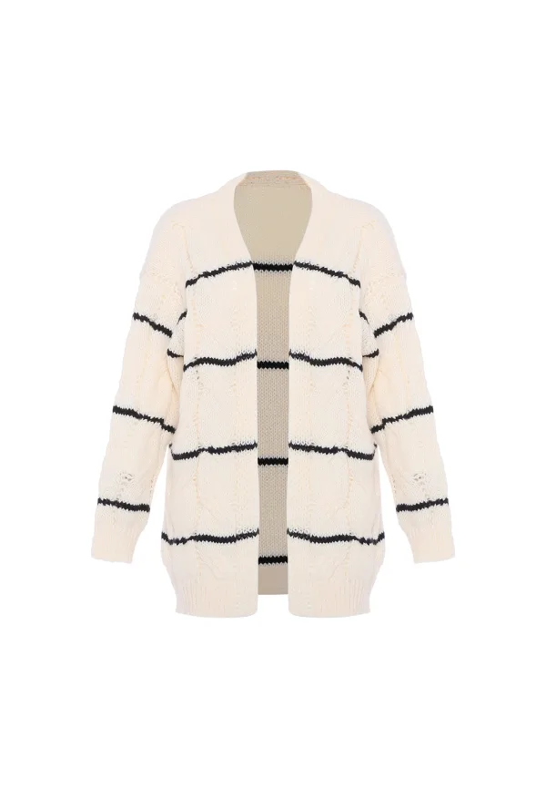 Geniet van de gezellige uitstraling van deze gebreide trui met een dikke textuur en een horizontaal streeppatroon. Dankzij de relaxte pasvorm en het oversized schouderontwerp straalt hij casual comfort uit. De geribde ronde hals, zoom en manchetten zorgen voor een comfortabel gevoel en warmte op koelere dagen. Kies voor de modieuze en toch ontspannen stijl voor een veelzijdige toevoeging aan je garderobe. Vest trui
