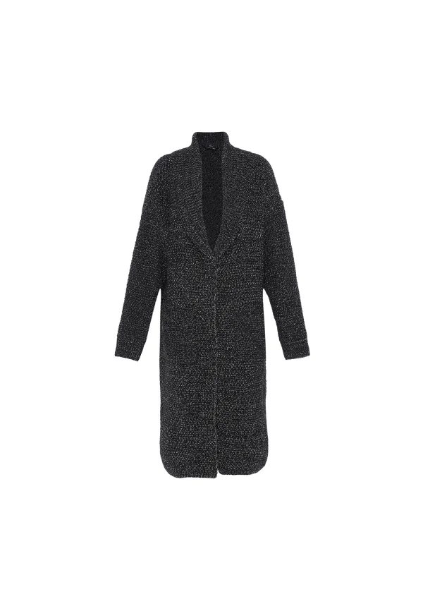Deze knielange jas is een verfijnde toevoeging aan je garderobe en heeft een structuurstof en een reverskraag voor een elegante touch. Met zijn losse, iets oversized silhouet biedt dit open ontwerp zowel comfort als stijl. Met twee zakken op heuphoogte en strakke lijnen aan de zoom, manchetten en opening aan de voorkant straalt deze jas een gestructureerde maar vloeiende elegantie uit. Ideaal voor wie op zoek is naar een chique en casual look met een vleugje verfijning. Vest trui