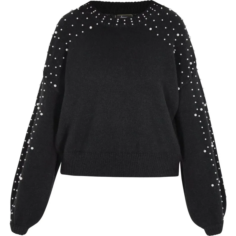 Breid je casual garderobe uit met deze stijlvolle gebreide trui. De trui heeft een klassieke ronde hals en lange mouwen, die extra structuur krijgen door geribde details aan de kraag, manchetten en zoom. Het hoogtepunt is het patroon van kleine versieringen die de schouders, mouwen en borst sieren en de losvallende trui een vleugje charme geven. Jumper