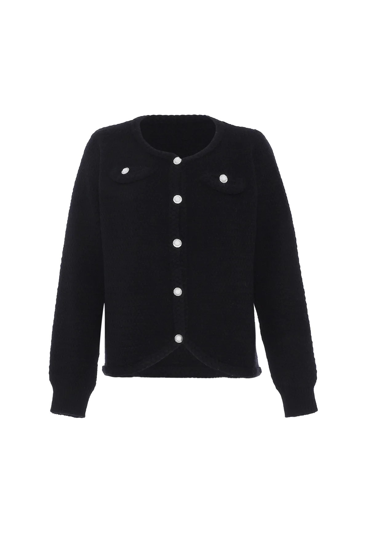 Wikkel jezelf in gezellig comfort met dit gebreide vest. Dit kledingstuk heeft een ronde halslijn en een knoopsluiting aan de voorkant en straalt casual elegantie uit. Geribde manchetten en zoom zorgen voor structuur, terwijl opgestikte zakken met bijpassende knopen zowel stijl als functionaliteit bieden. De losse pasvorm en de zachte, dikke gebreide stof maken hem perfect om stijlvol warm te blijven. Gebreid jasje