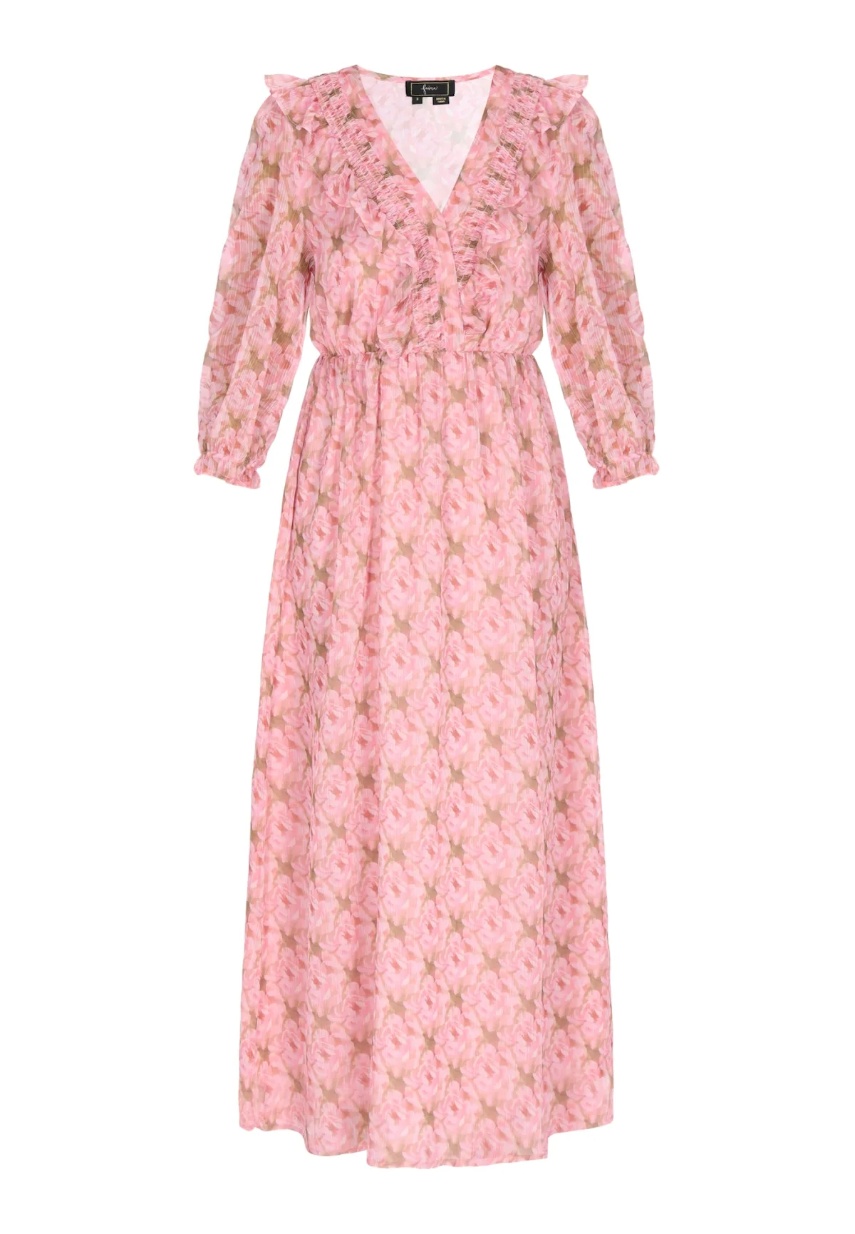 Design: Gevoerde zoom/rand, Wikkel-look; Materiaal: Chiffon; Halstype: V-hals; Motief: Bloemenprint; Details: Ruches, Gedrapeerd; Extra’s: All-over patroon, Gladde stof; Lengte: 7/8 lengte; Snit: Getailleerd; Pasvorm: Slanke pasvorm; Armlengte: Driekwart mouw
