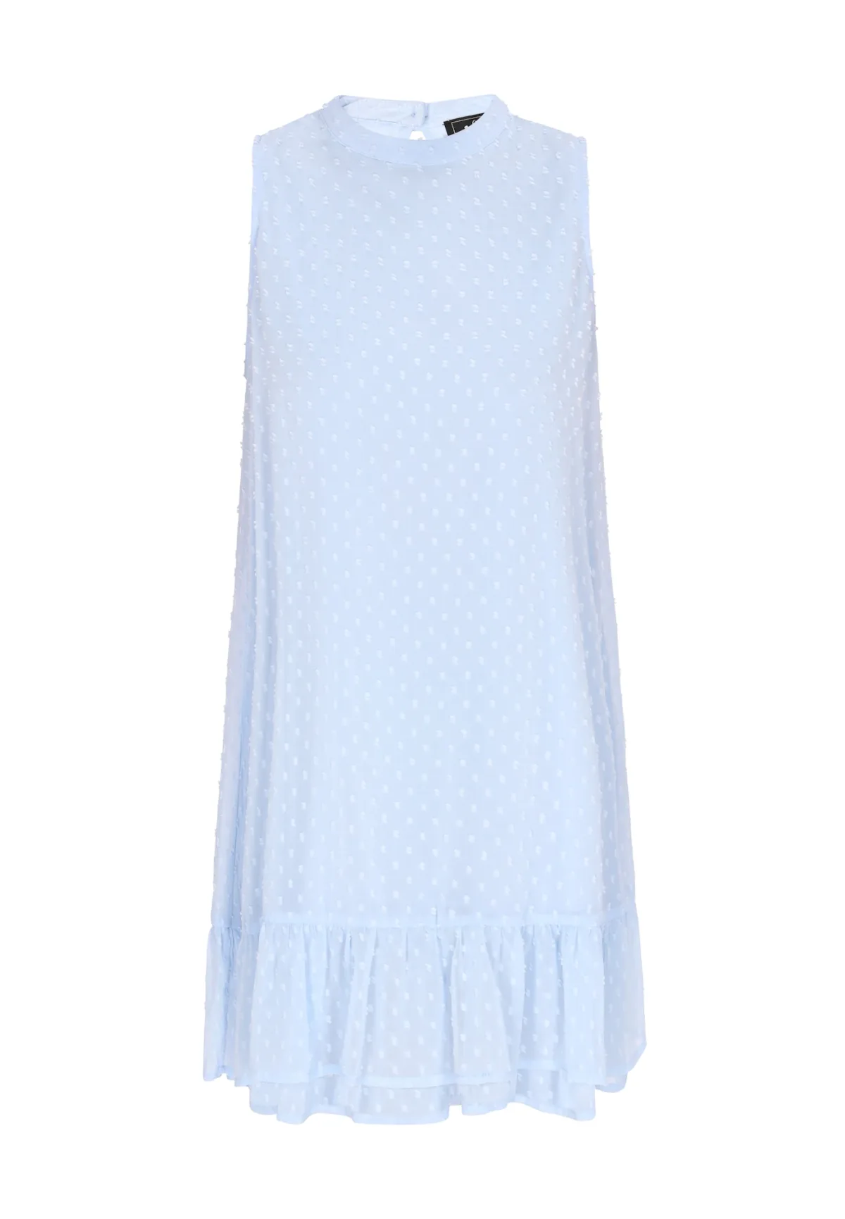 Design: Gevoerde zoom/rand, Keyholesluiting, Verlengd rugpand; Type sluiting: Knoopsluiting; Materiaal: Chiffon; Halstype: Opstaande kraag; Motief: Gestippeld; Soort bandjes: Brede bandjes; Details: Cut-outs, Volant; Extra's: Op staal naden, Lichte stof; Lengte: Kort/mini; Snit: Uitlopend; Pasvorm: Losse pasvorm; Armlengte: Mouwloos
