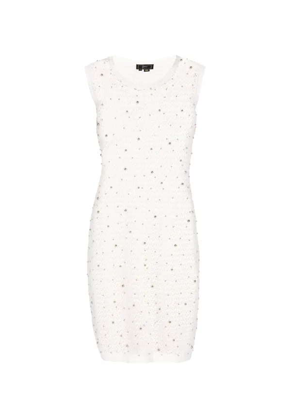Design: Gevoerde zoom/rand, Geribbelde kraag, Geribd ceintuurtje; Materiaal: Knitwear; Halstype: Ronde hals; Motief: Effen; Details: Sierstenen; Extra's: Applicaties, Voelt zacht aan; Lengte: Kort/mini; Pasvorm: Slanke pasvorm; Armlengte: Mouwloos
