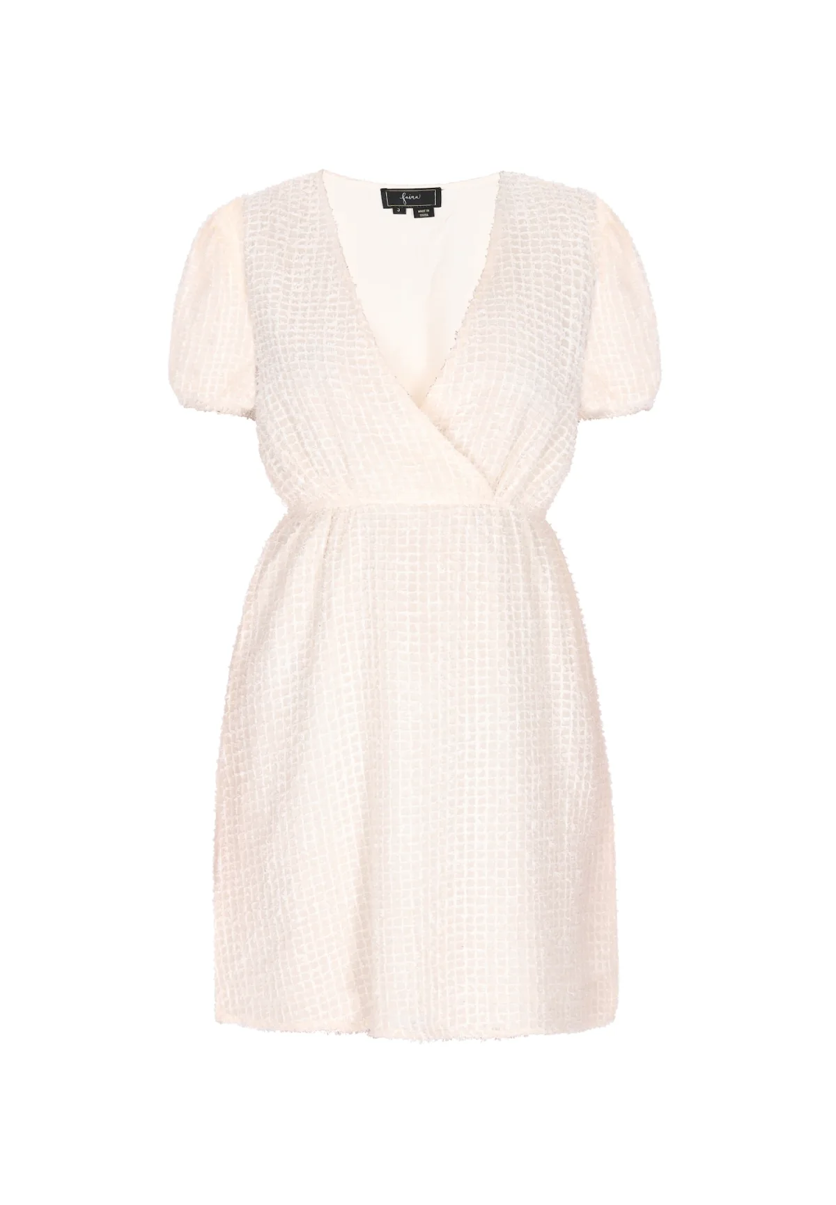Design: Gevoerde zoom/rand; Materiaal: Viscose; Halstype: V-hals; Motief: Effen; Details: Gedrapeerd, Wikkel design; Extra's: Gestructureerd oppervlak, Op staal naden; Lengte: Kort/mini; Pasvorm: Normale pasvorm; Armlengte: Kwartmouw