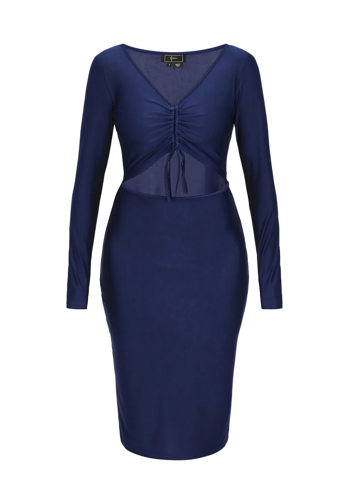 Design: Diepe snit/decolleté, Ingelegde kraag; Materiaal: Jersey; Halstype: V-hals; Motief: Effen; Details: Cut-outs, Gedrapeerd; Extra's: Gladde stof; Lengte: Knielengte; Snit: Figuur omarmend; Pasvorm: Aansluitende pasvorm; Armlengte: Lange mouw