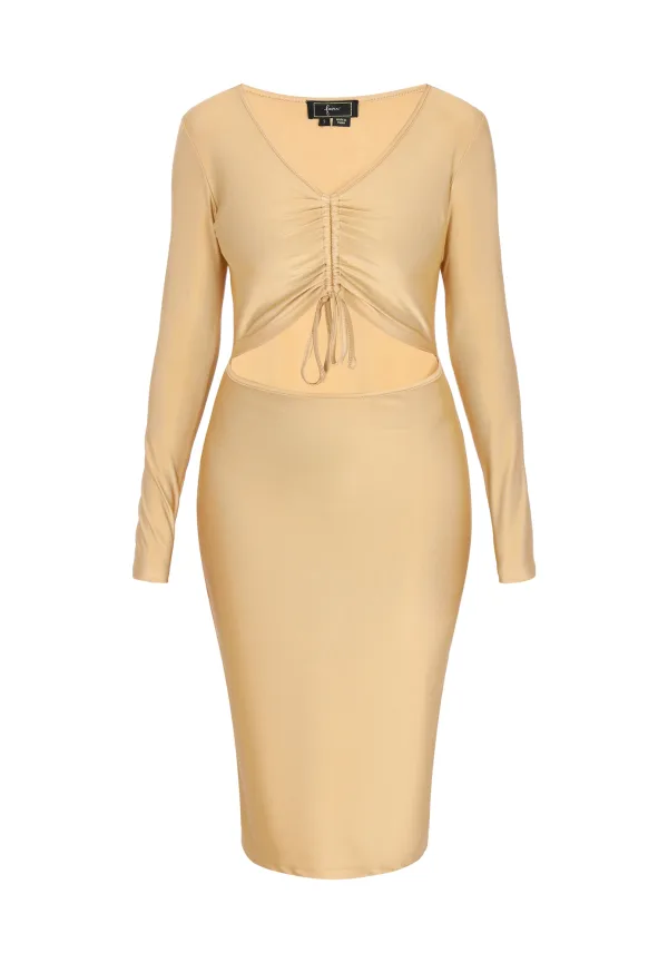 Design: Gevoerde zoom/rand, Om te knopen/binden; Materiaal: Jersey; Halstype: V-hals; Motief: Effen; Details: Cut-outs, Gedrapeerd; Extra's: Metallic look; Lengte: Knielengte; Snit: Figuur omarmend; Pasvorm: Aansluitende pasvorm; Armlengte: Lange mouw