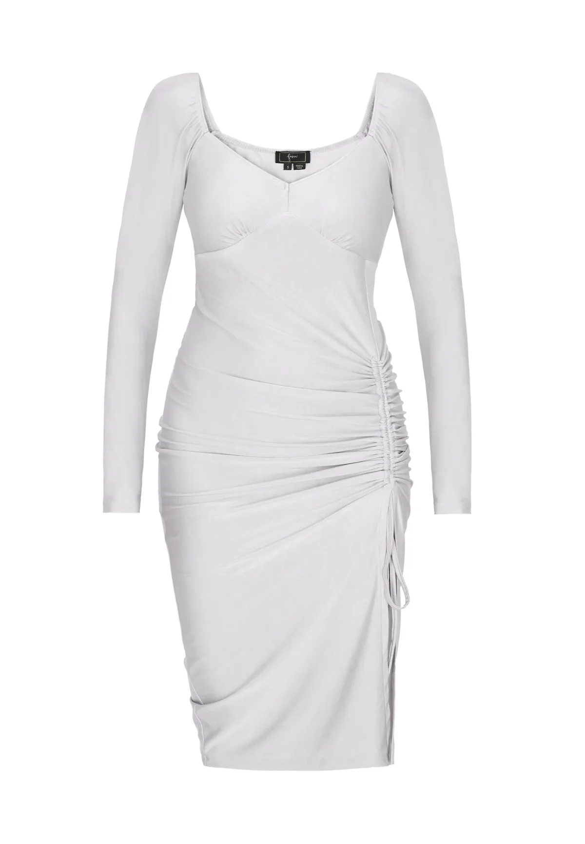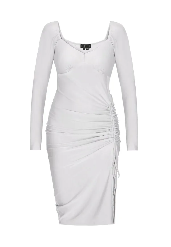 Design: Gevoerde zoom/rand; Motief: Effen; Details: Gedrapeerd; Extra's: Gladde stof; Lengte: Knielengte; Snit: Figuur omarmend; Pasvorm: Aansluitende pasvorm; Armlengte: Lange mouw