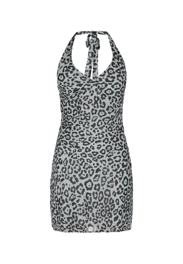 Design: Diepe snit/decolleté, Om te knopen/binden; Type sluiting: Ritssluiting; Halstype: V-hals; Motief: Dierenprint; Soort bandjes: Haltermodel; Details: Backless; Extra's: All-over patroon, Voelt zacht aan; Lengte: Kort/mini; Snit: Figuur omarmend; Pasvorm: Aansluitende pasvorm; Armlengte: Mouwloos