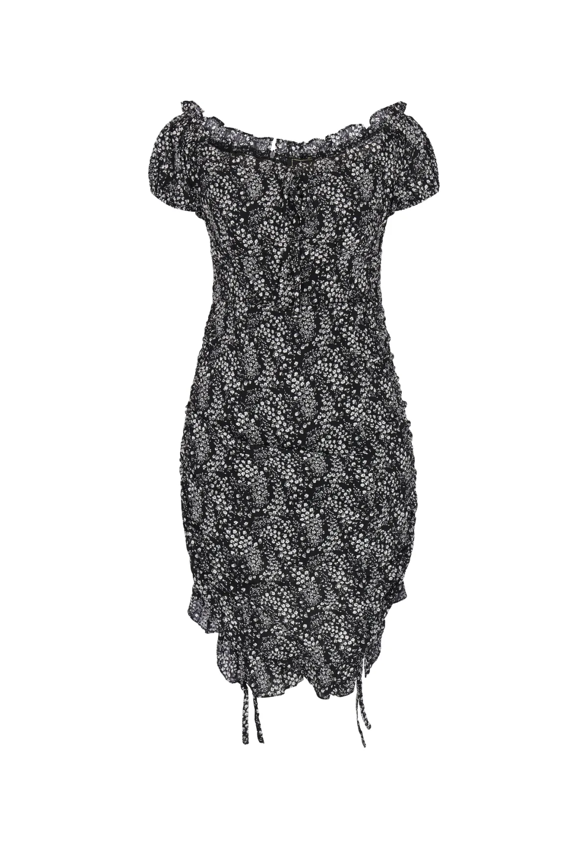 Design: Gevoerde zoom/rand; Type sluiting: Ritssluiting; Motief: Bloemenprint; Details: Gedrapeerd; Extra's: All-over patroon; Lengte: Kort/mini; Snit: Figuur omarmend; Pasvorm: Slanke pasvorm; Armlengte: Kwartmouw