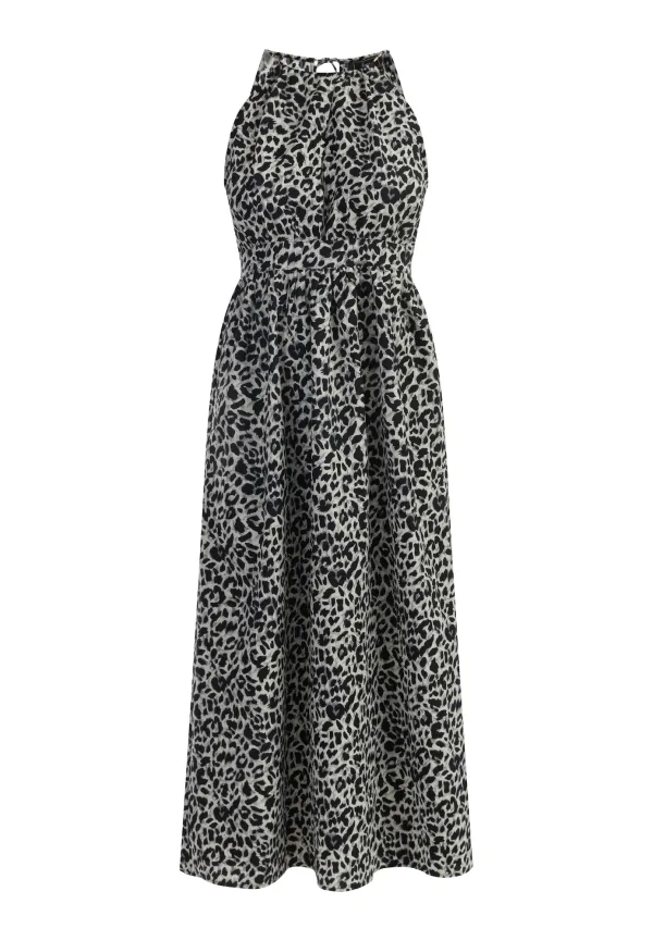Faina Maxi-jurk met luipaardprint Dames Grijze Leeuw