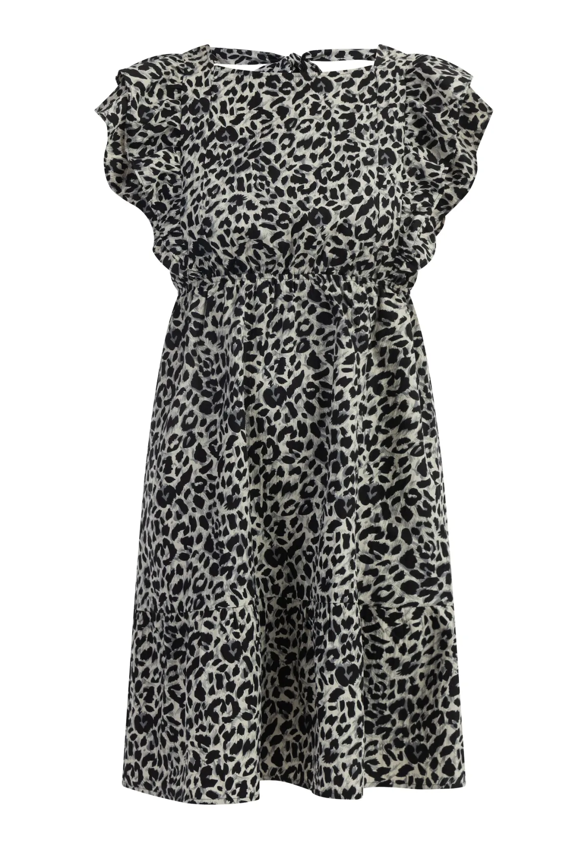 Design: Gevoerde zoom/rand; Halstype: Carréhals; Motief: Dierenprint; Details: Cut-outs, Volant, Gedrapeerd; Extra's: All-over patroon; Lengte: Knielengte; Pasvorm: Normale pasvorm; Armlengte: Kwartmouw