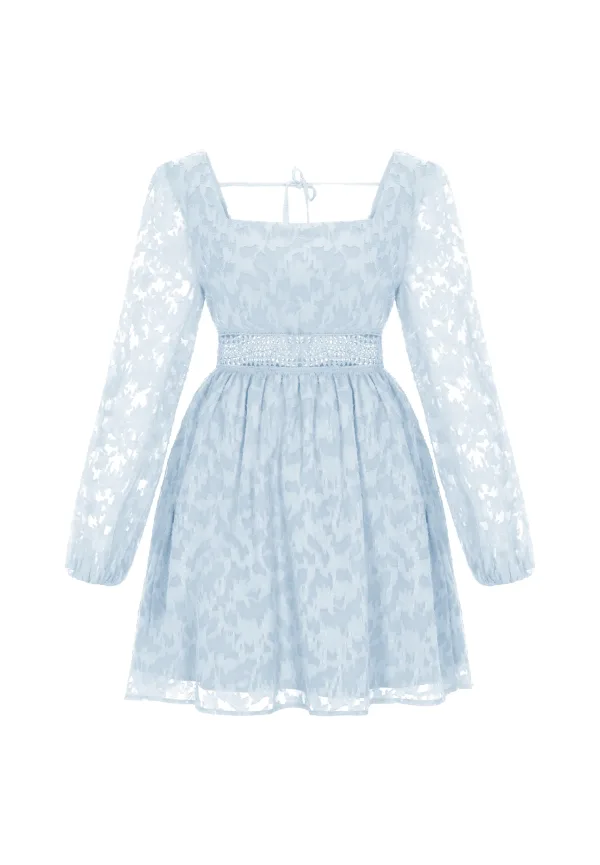 Design: Pofmouwen; Type sluiting: Ritssluiting; Halstype: Carréhals; Motief: Effen; Details: Kant, Gedrapeerd, Mesh, Backless; Extra's: Lichte stof; Lengte: Kort/mini; Snit: Getailleerd; Pasvorm: Normale pasvorm; Armlengte: Lange mouw