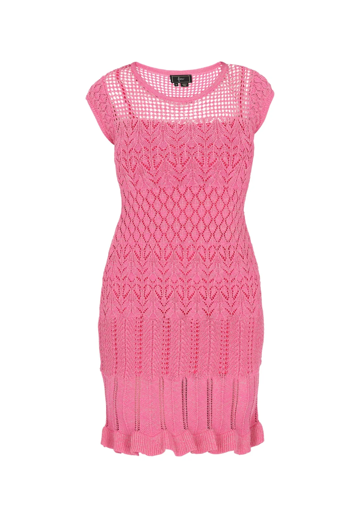 Design: Geribbelde kraag; Type sluiting: Slip; Halstype: Ronde hals; Motief: Effen; Details: Ruches; Extra's: Glitterend; Lengte: Kort/mini; Pasvorm: Normale pasvorm; Armlengte: Kwartmouw