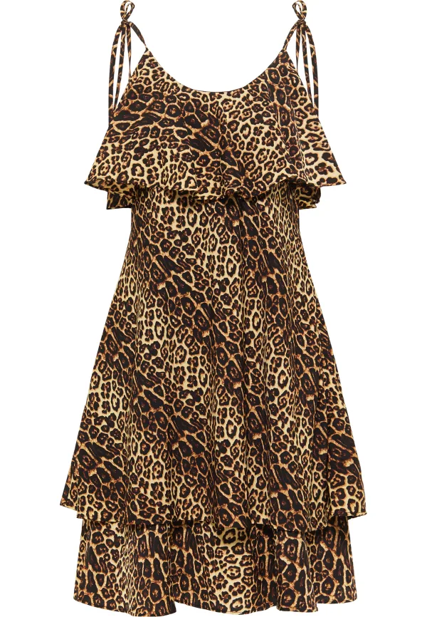 Faina Jurk met leo-opdruk nelice Dames beige leo