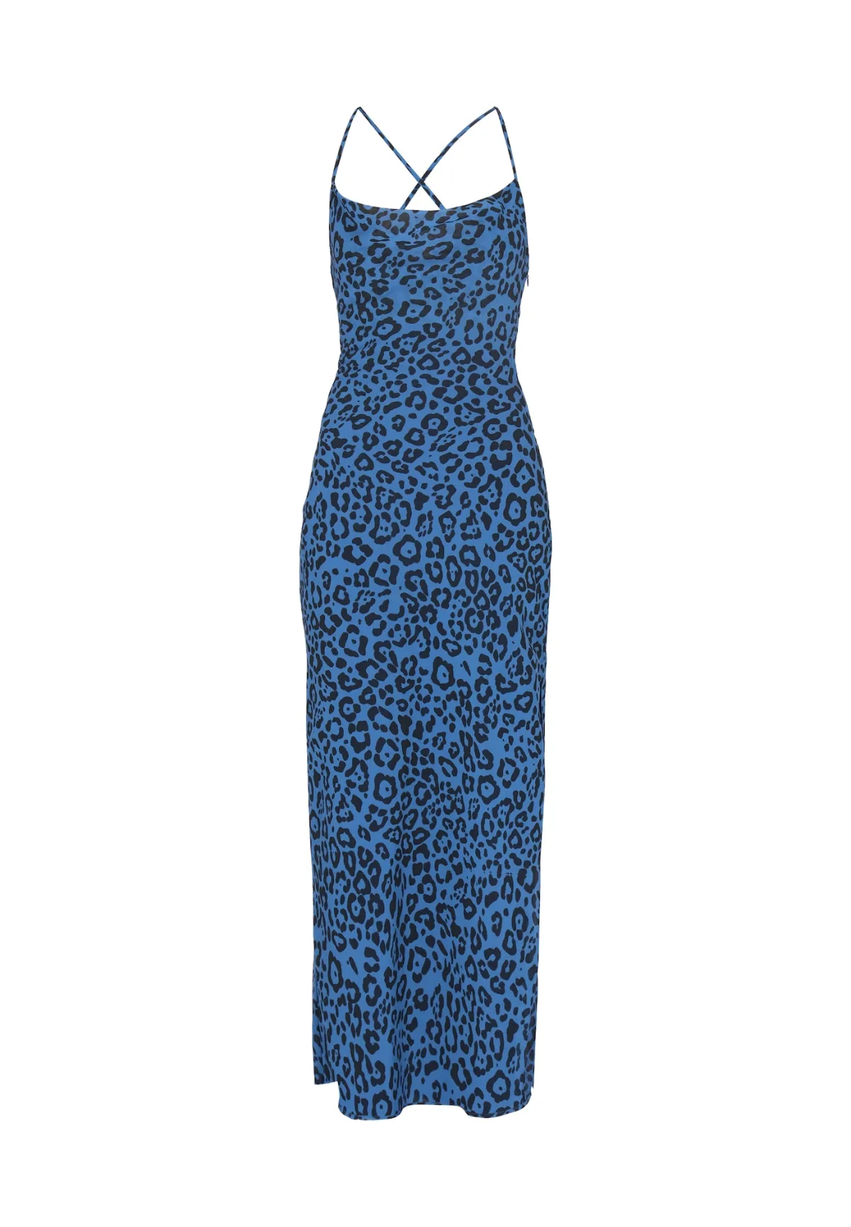 Design: Beenopening; Type sluiting: Ritssluiting; Materiaal: Katoen; Halstype: Watervalhals; Motief: Dierenprint; Soort bandjes: Spaghettibandjes; Extra's: All-over patroon; Lengte: Lang/maxi; Pasvorm: Aansluitende pasvorm; Armlengte: Mouwloos