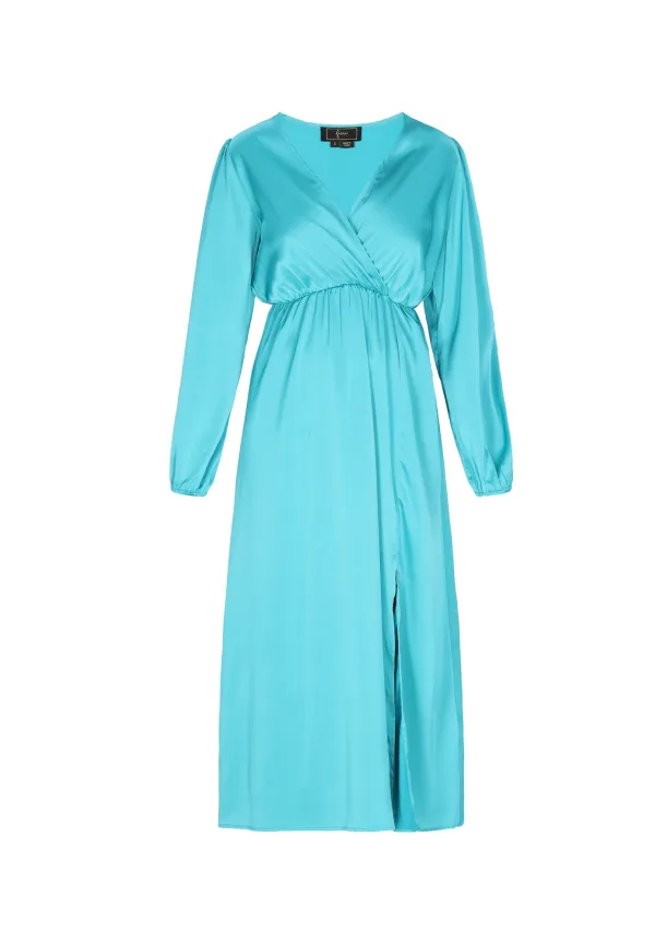 Design: Gevoerde zoom/rand, Split; Type sluiting: Slip; Materiaal: Satijn; Halstype: V-hals; Motief: Effen; Details: Gedrapeerd; Extra's: Glinsterend, Op staal naden; Lengte: 7/8 lengte; Pasvorm: Normale pasvorm; Armlengte: Lange mouw