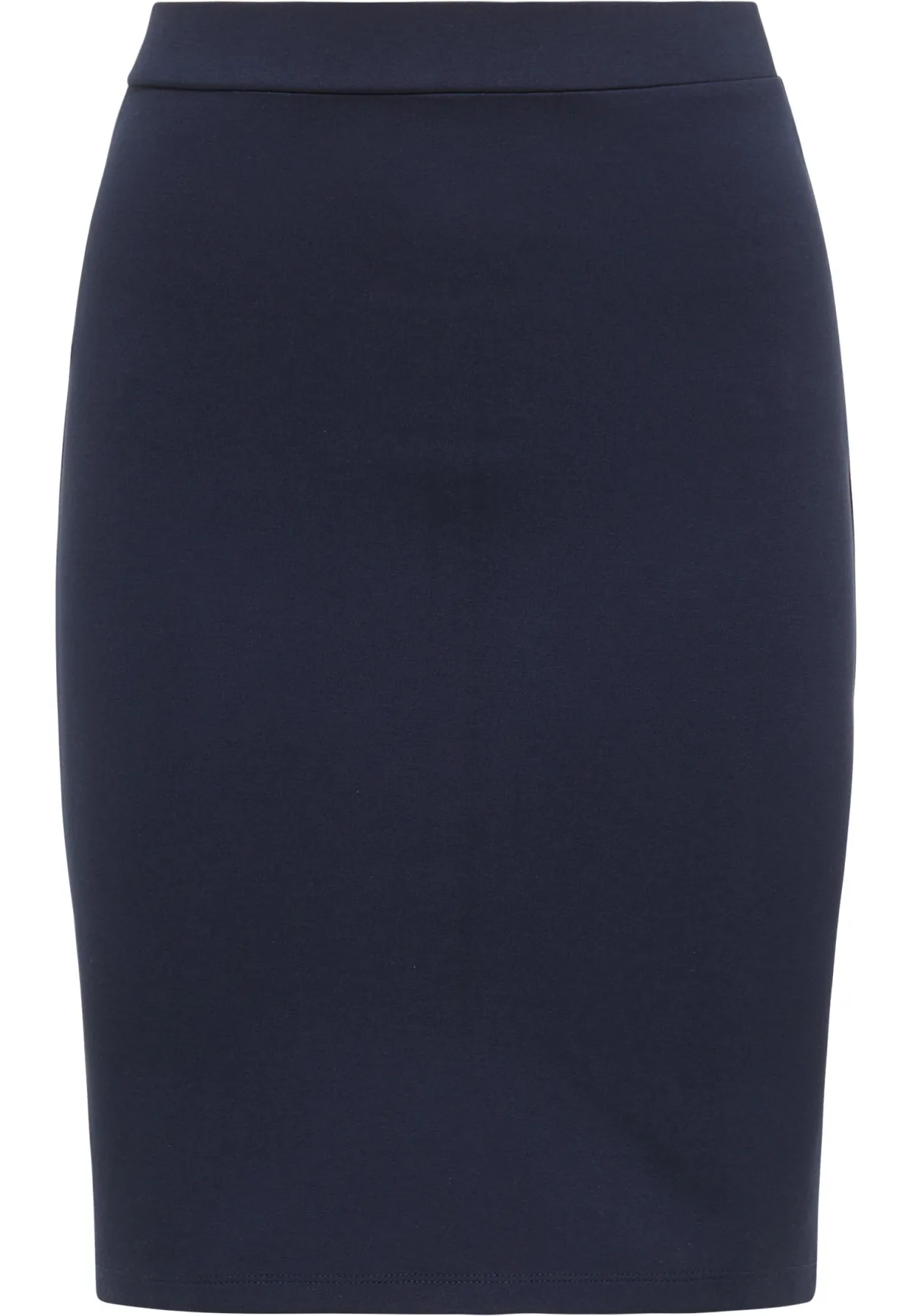 De kokerrok van faina overtuigt met zijn nauwsluitende pasvorm die het vrouwelijke silhouet elegant en indrukwekkend accentueert. Smal gesneden en gemaakt van een viscosemix met stretchgehalte, maakt het ontwerp indruk door zijn effen look en de goudkleurige rits aan de achterkant van de rok. Bijzondere aandacht trekt de ritshanger, die versierd is met een grote strassteen.