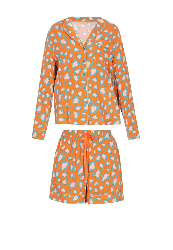 Specificaties: faina Korte pyjama ‘Home’ beige / jade groen / oranje