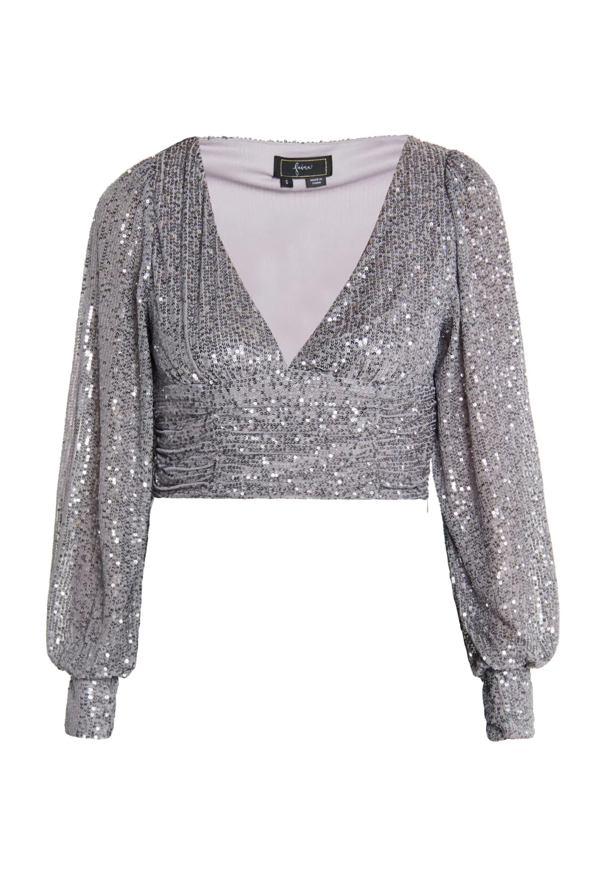 Het juiste topje voor het feestseizoen: knal de kurken eruit en trek de glinsterende cropped top van faina aan. De top met pailletten heeft een diepe V-halslijn, een gedrapeerde taille, pofmouwen en wijde mouwen met elastische manchetten die een mooi volume creëren. Dankzij de soepele binnenvoering en de ritssluiting aan de zijkant is hij zeer comfortabel om te dragen. longsleeve-shirt