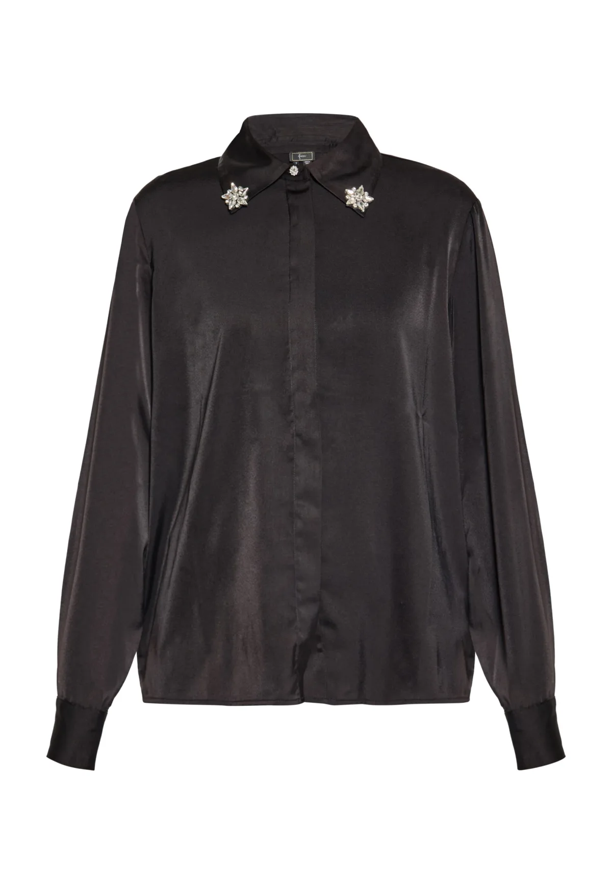 Maak kennis met een verfijnd satijnen overhemd met prachtige decoratieve knopen op de puntige kraag en manchetten. Dit overhemd met lange mouwen heeft een getailleerde pasvorm, een rechte zoom en een verborgen knoopsluiting voor een verzorgde look. Dit elegante exemplaar is perfect voor formele of semi-formele gelegenheden en straalt charme en stijl uit. Dit product maakt deel uit van de Elegant Shirt-collectie overhemdblouse