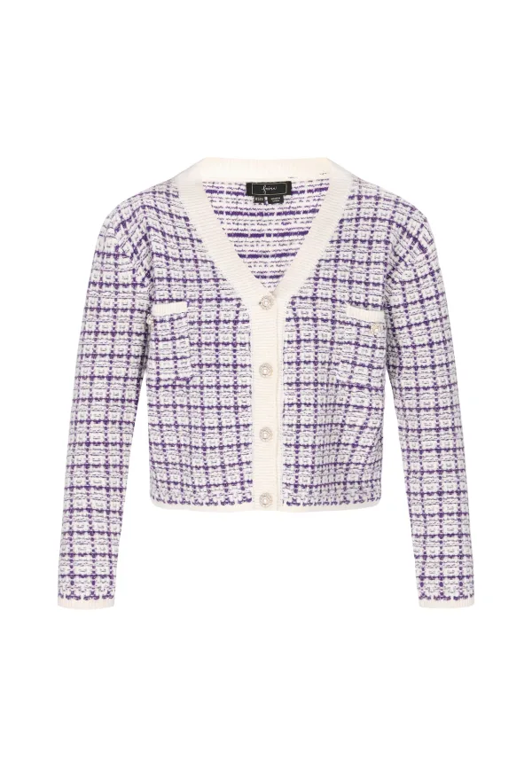 Design: Knop placket, Overcut schouder, Borstzak; Type sluiting: Knoopsluiting; Materiaal: Bouclé; Halstype: V-hals; Motief: Geruit; Extra's: Met textuur; Pasvorm: Losse pasvorm; Armlengte: Lange mouw; Lengte: Normale lengte