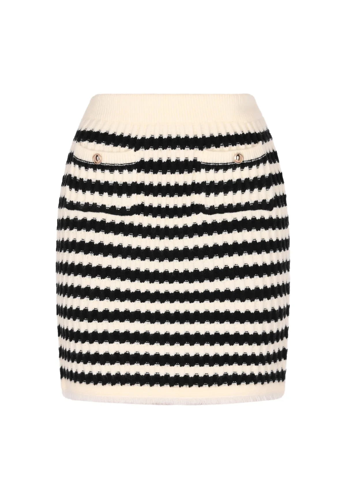 Design: Opgezette zakken; Materiaal: Knitwear; Motief: Gestreept; Rokvorm: Kokerrok; Lengte: Kort/mini; Pasvorm: Normale pasvorm