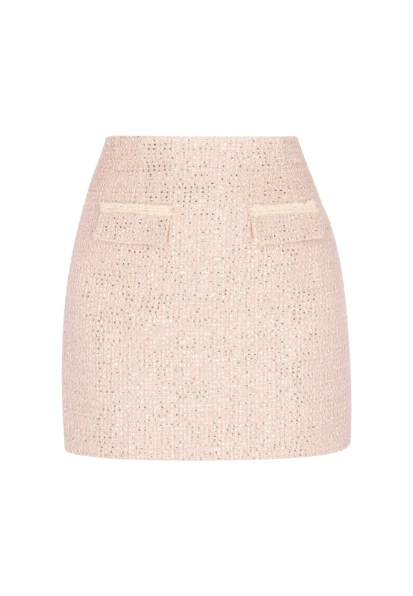 Design: Rechte zoom, Opzet-/flapzak; Type sluiting: Ritssluiting; Materiaal: Bouclé; Motief: Geruit; Rokvorm: Minirok; Details: Pailletten; Extra's: Glitterend, Met textuur; Lengte: Kort/mini; Pasvorm: Slanke pasvorm