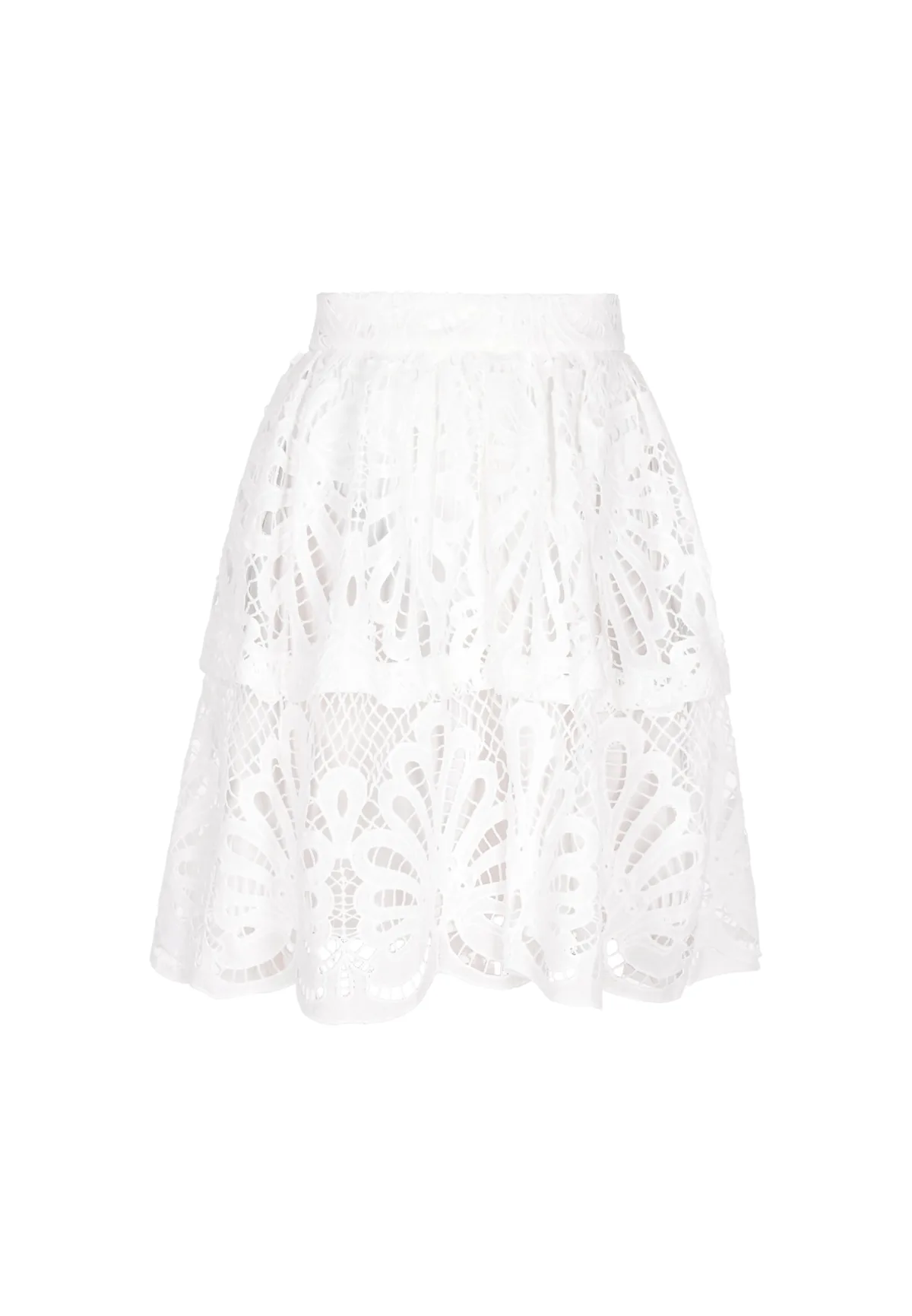 Design: Gevoerde zoom/rand, Geschulpte zoom; Materiaal: Viscose; Motief: Effen; Rokvorm: Volantrok; Details: Kant, Volant, Plooien, Gedrapeerd, Mesh; Extra’s: Op staal naden, Lichte stof; Lengte: Knielengte; Pasvorm: Normale pasvorm
