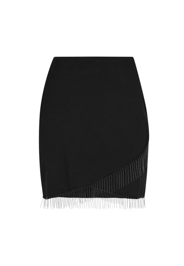 Design: Elastische taille/zoom; Type sluiting: Ritssluiting; Materiaal: Jersey; Motief: Effen; Details: Franjes; Extra's: Applicaties; Lengte: Kort/mini; Pasvorm: Normale pasvorm