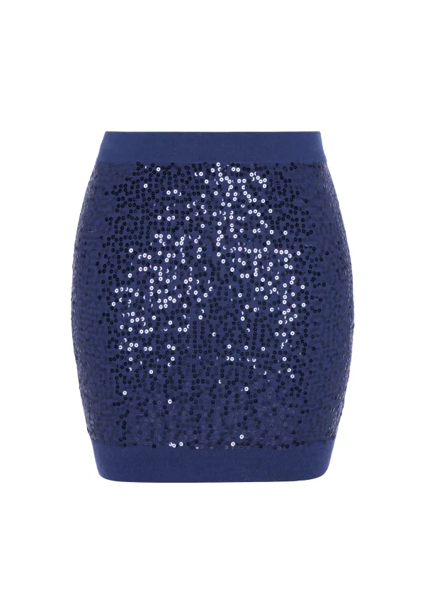 Design: Elastische taille/zoom, Rechte zoom; Materiaal: Knitwear; Motief: Effen; Rokvorm: Minirok; Details: Pailletten; Extra's: Glitterend, Op staal naden, Voelt zacht aan; Lengte: Kort/mini; Pasvorm: Slanke pasvorm