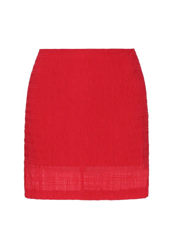 Design: Rechte zoom; Type sluiting: Ritssluiting; Materiaal: Chiffon; Motief: Effen; Rokvorm: Minirok; Extra's: Op staal naden, Met textuur; Lengte: Kort/mini; Pasvorm: Slanke pasvorm; Taillehoogte: Mid waist